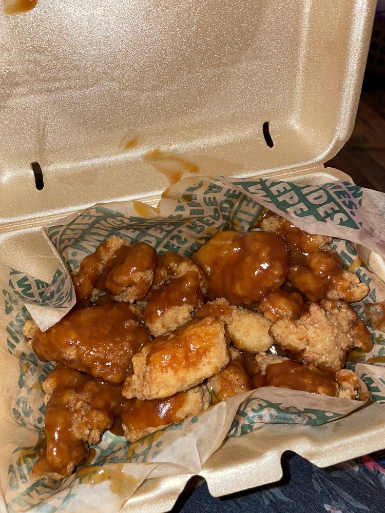 Comes with 20 Boneless Wings in your choice of 4 flavors, with a large fry and 2 dips. (Feeds 2-3)